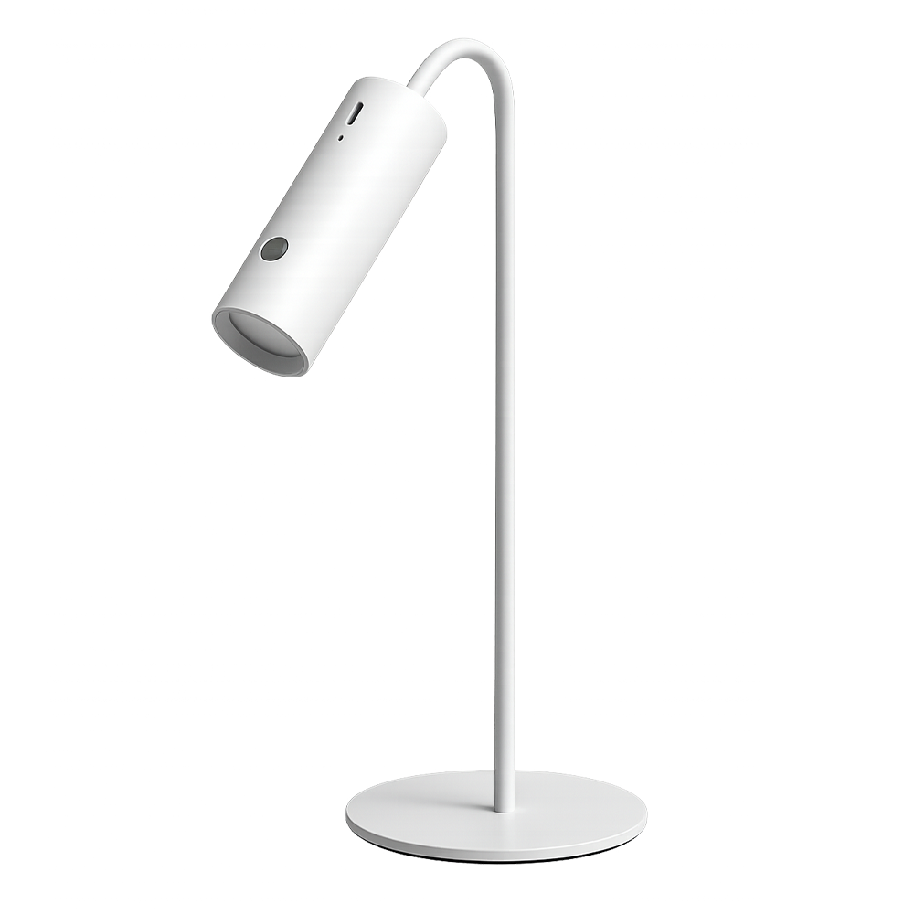 Upgrade your workspace or reading nook with the Modern White LED Spotlight Table Lamp. This lamp features a contemporary cylindrical head on a slim, minimalist frame, finished in crisp white for a clean and modern look. Designed as a charging model, it offers portable convenience and flexibility wherever you need focused illumination.