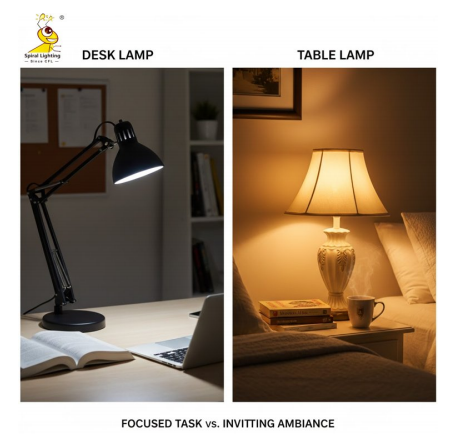 Discover the key differences between desk lamps and table lamps, from function and design to light quality. Learn how to choose the right light for work, relaxation, and layered home design with expert tips from Spiral Lighting.