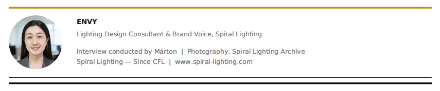 ENVY is a lighting design consultant and brand voice behind Spiral Lighting's acclaimed educational content. In this exclusive feature, she sits down with editor MÁRTON to break down one of the industry's most persistent misconceptions — the difference between a desk lamp and a table lamp. What follows is a masterclass in light, lifestyle, and layered design.